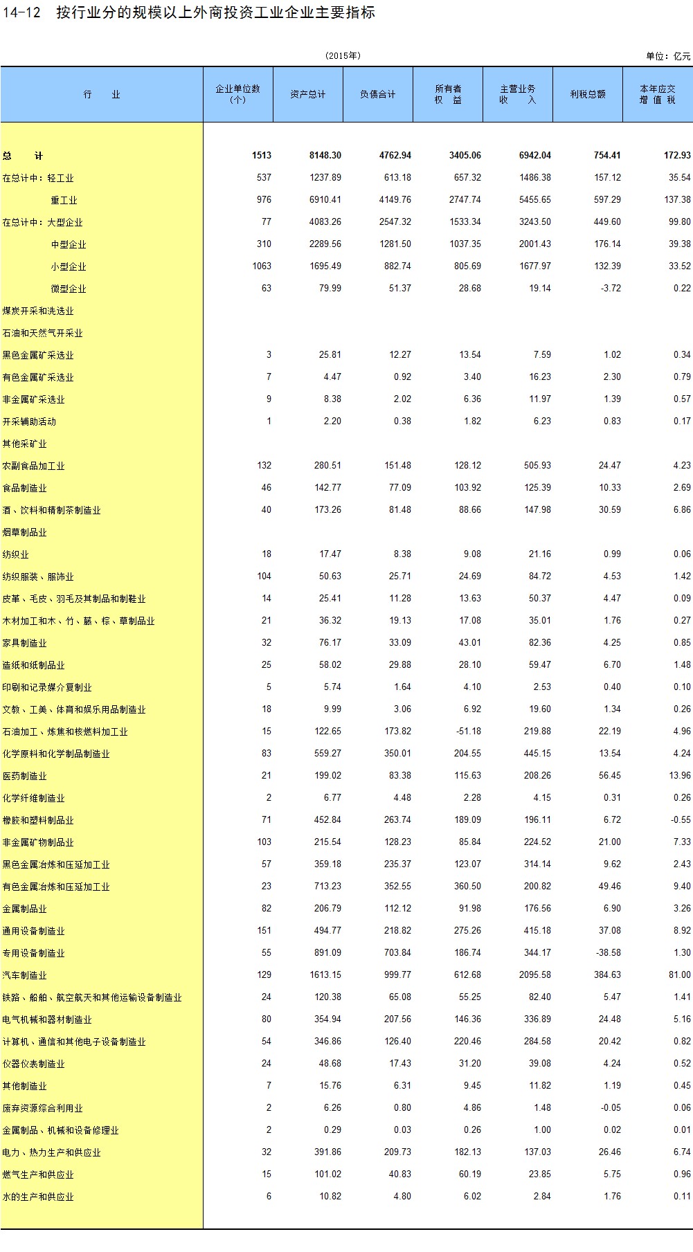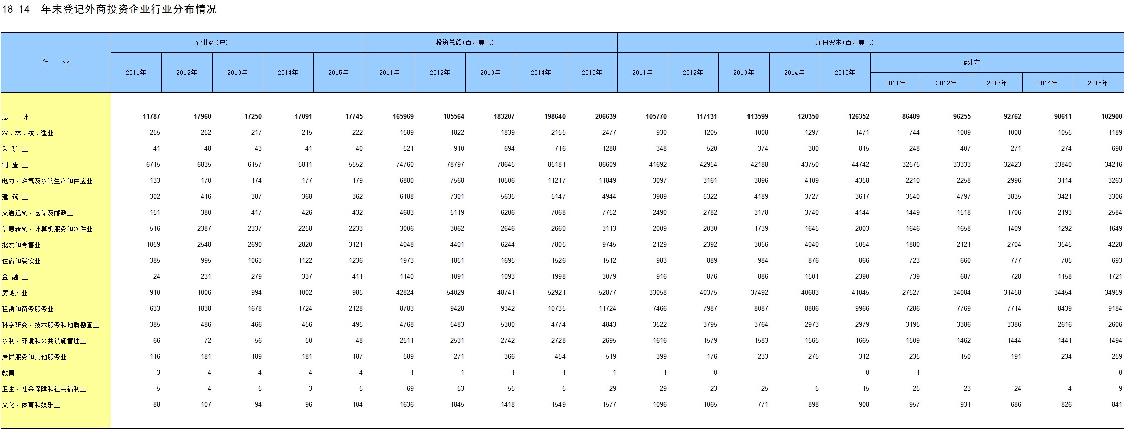 18-14 年末登记外商投资企业行业分布情况