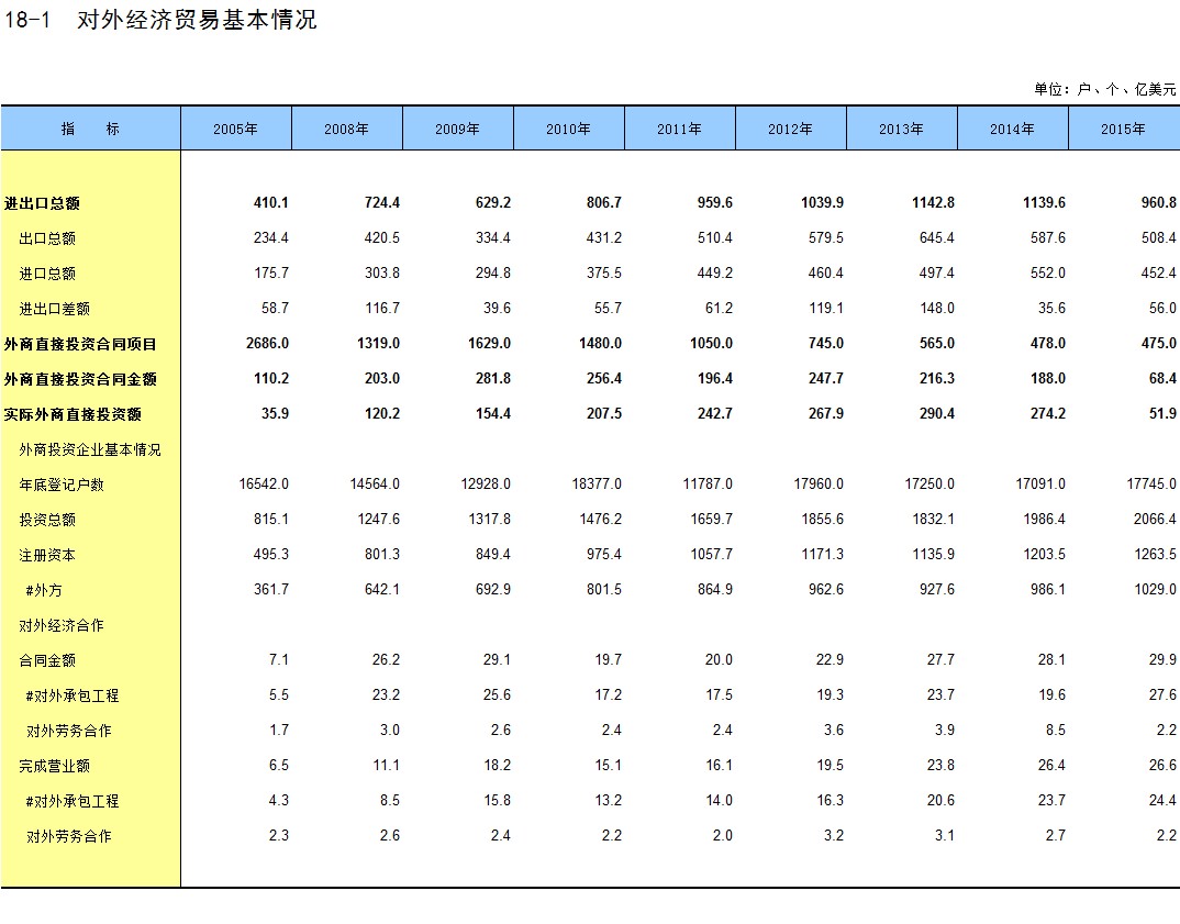 18-1 对外经济贸易基本情况