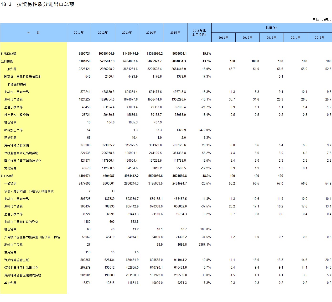 18-3 按贸易性质分进出口总额