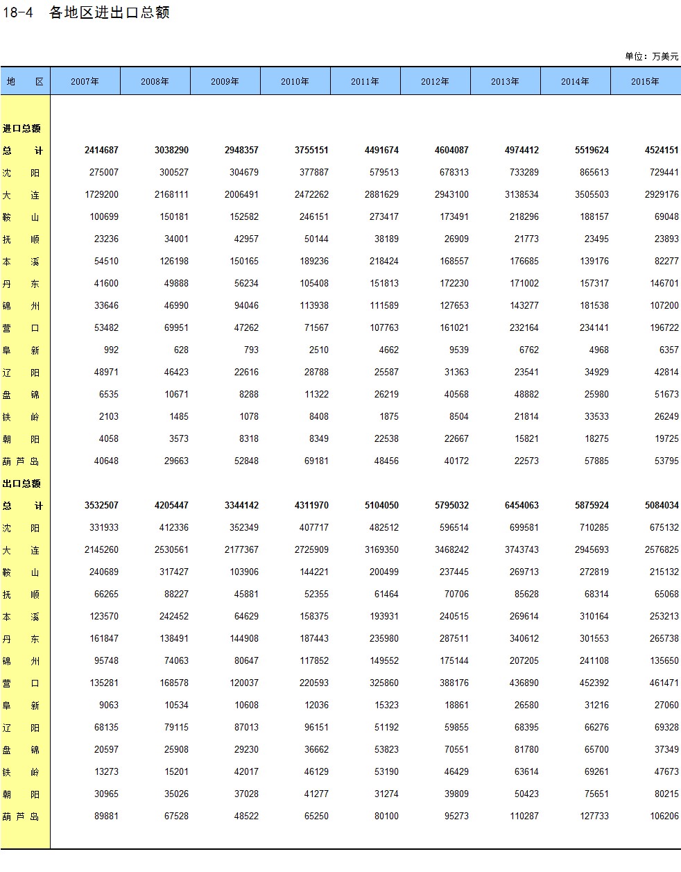 18-4 各地区进出口总额