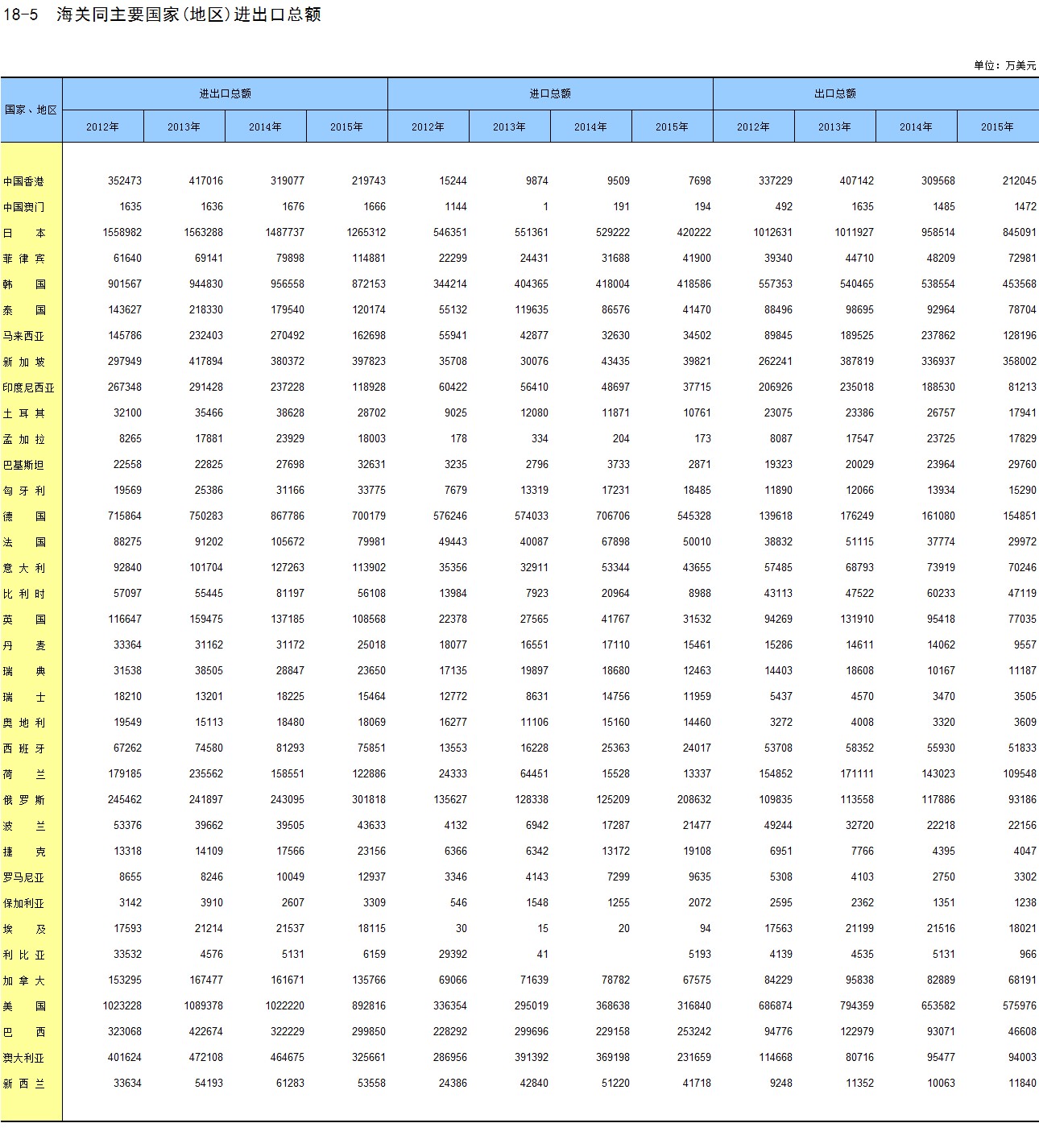18-5 海关同主要国家(地区)进出口总额