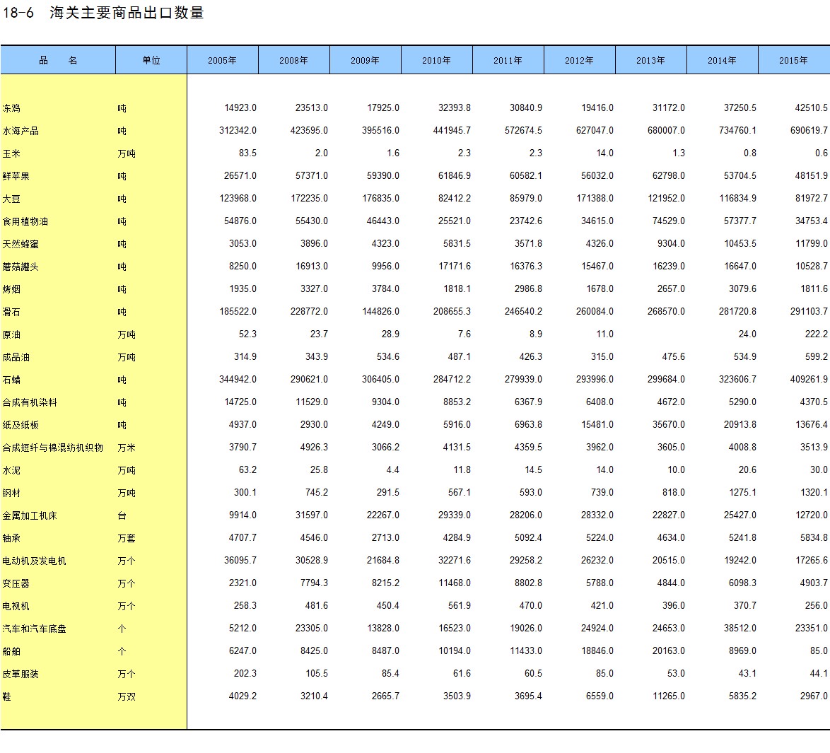 18-6 海关主要商品出口数量