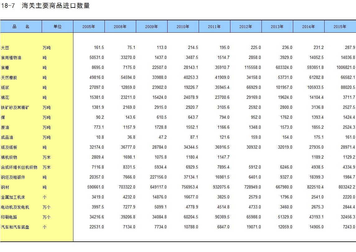 18-7 海关主要商品进口数量