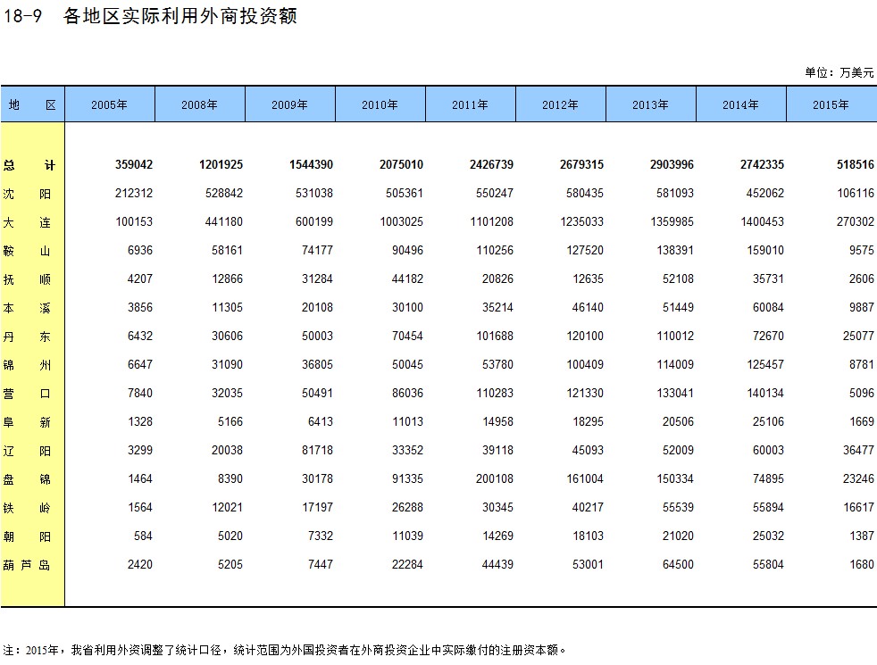18-9 各地区实际利用外商投资额