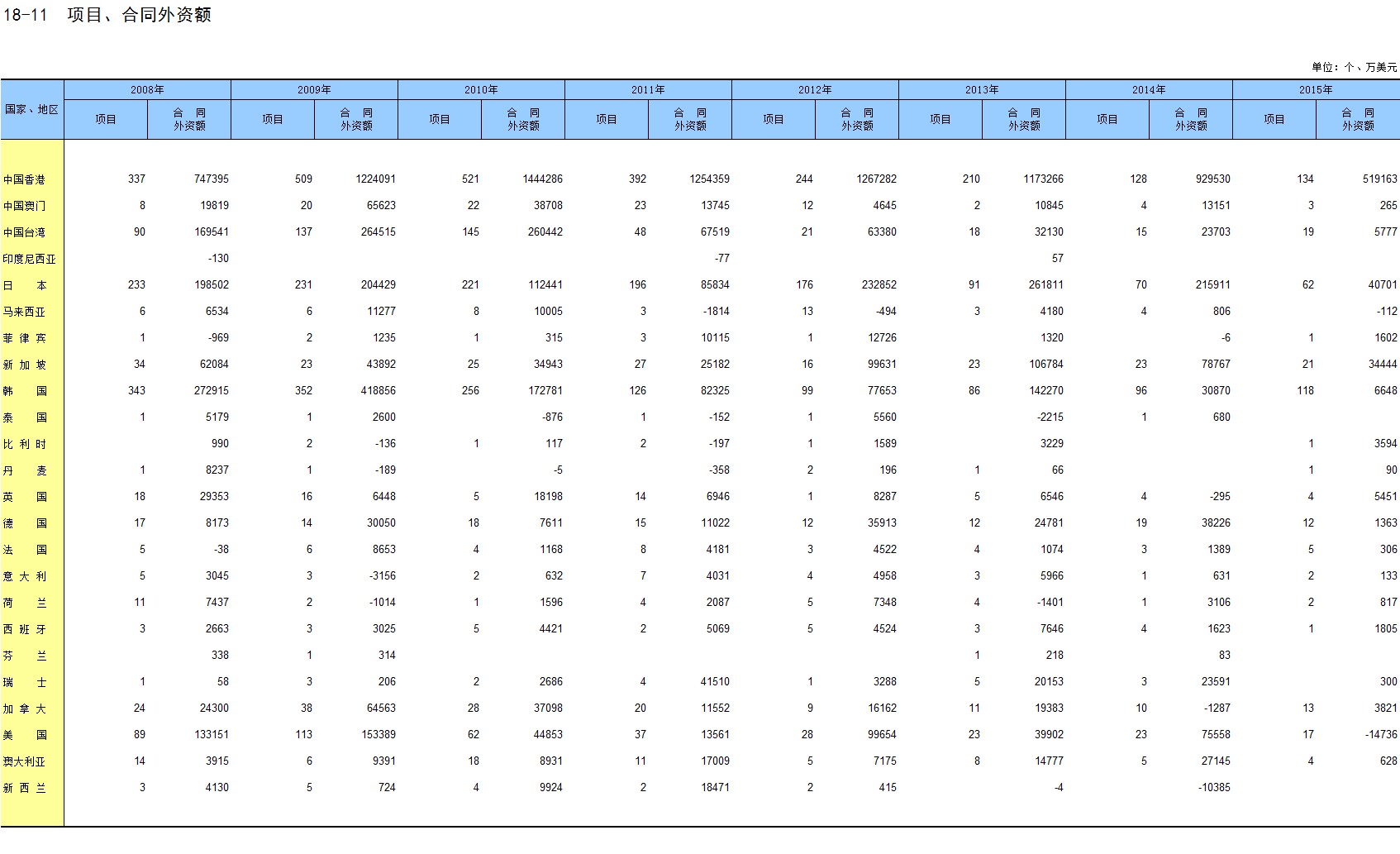 18-11 项目、合同外资额