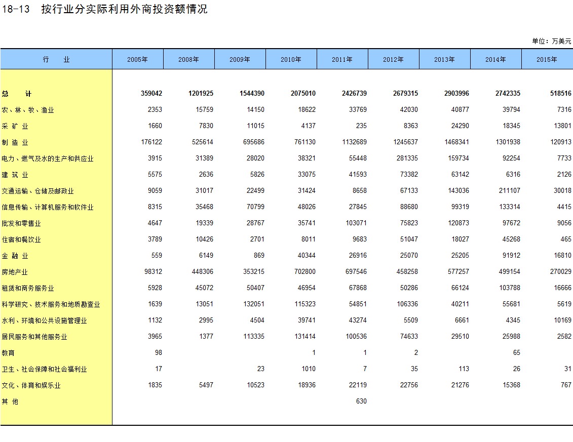 18-13 按行业分实际利用外商投资额情况