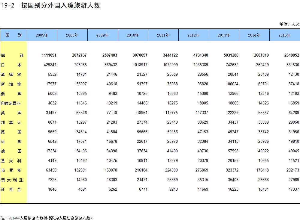 19-2 按国别分外国入境旅游人数