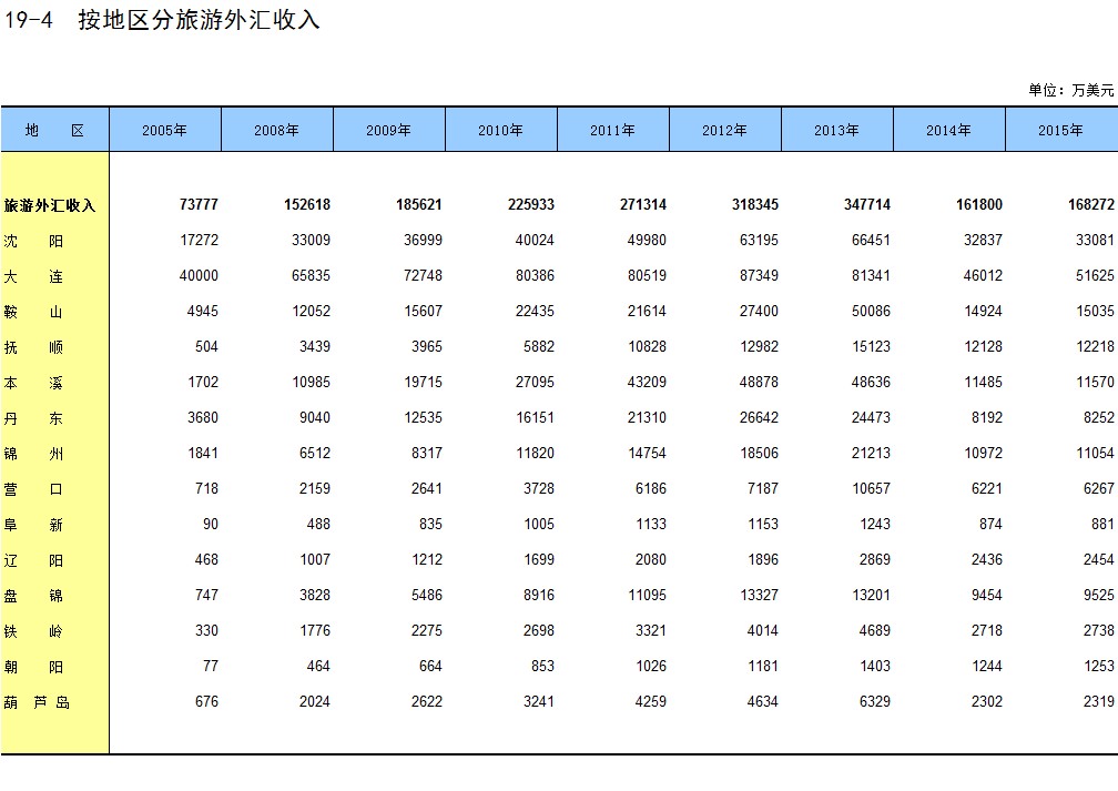 19-4 按地区分旅游外汇收入