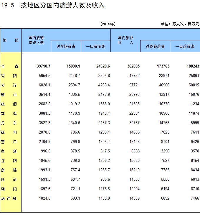 19-5 按地区分国内旅游人数及收入