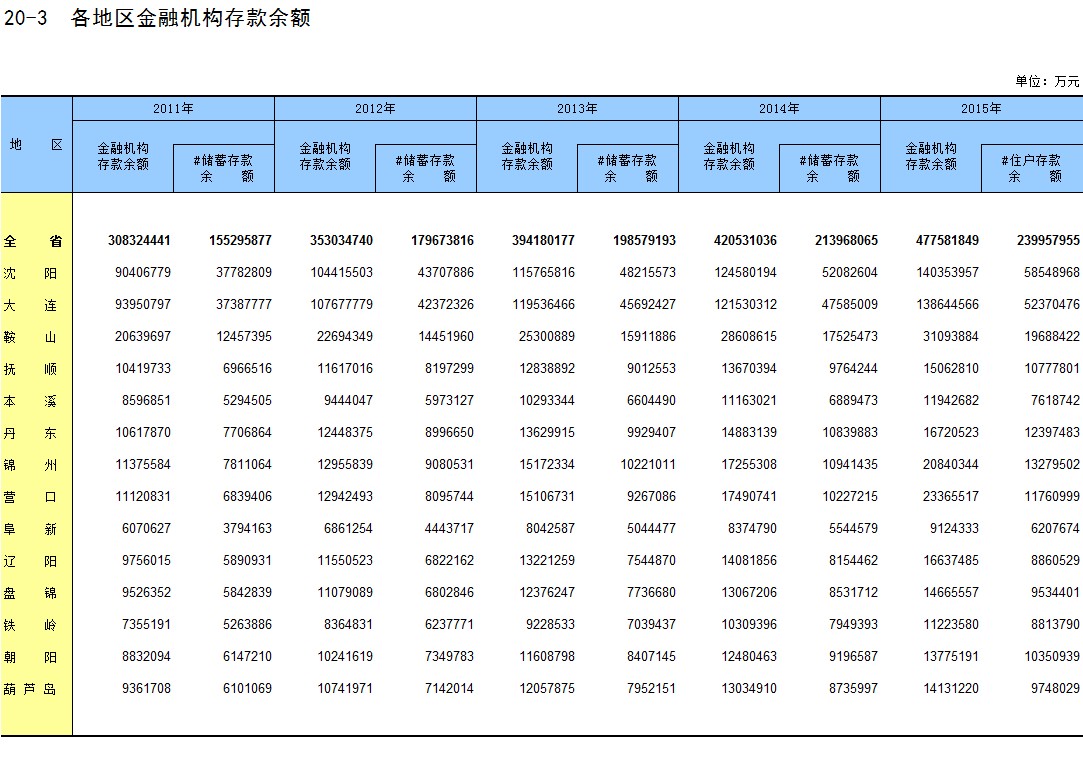 20-3 各地区金融机构存款余额