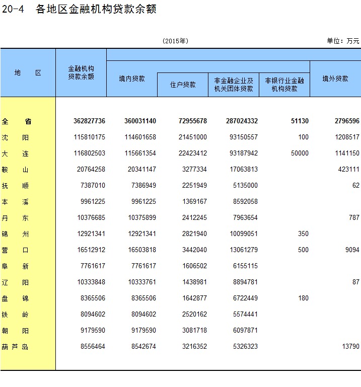 20-4 各地区金融机构贷款余额