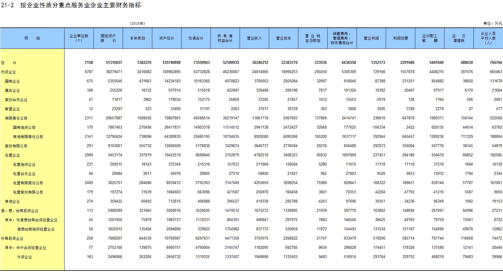21-2 按企业性质分重点服务业企业主要财务指标