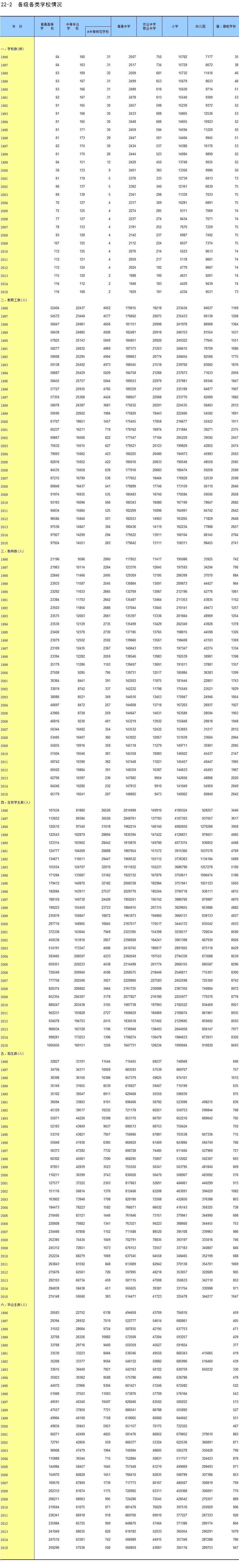 22-2 各级各类学校情况