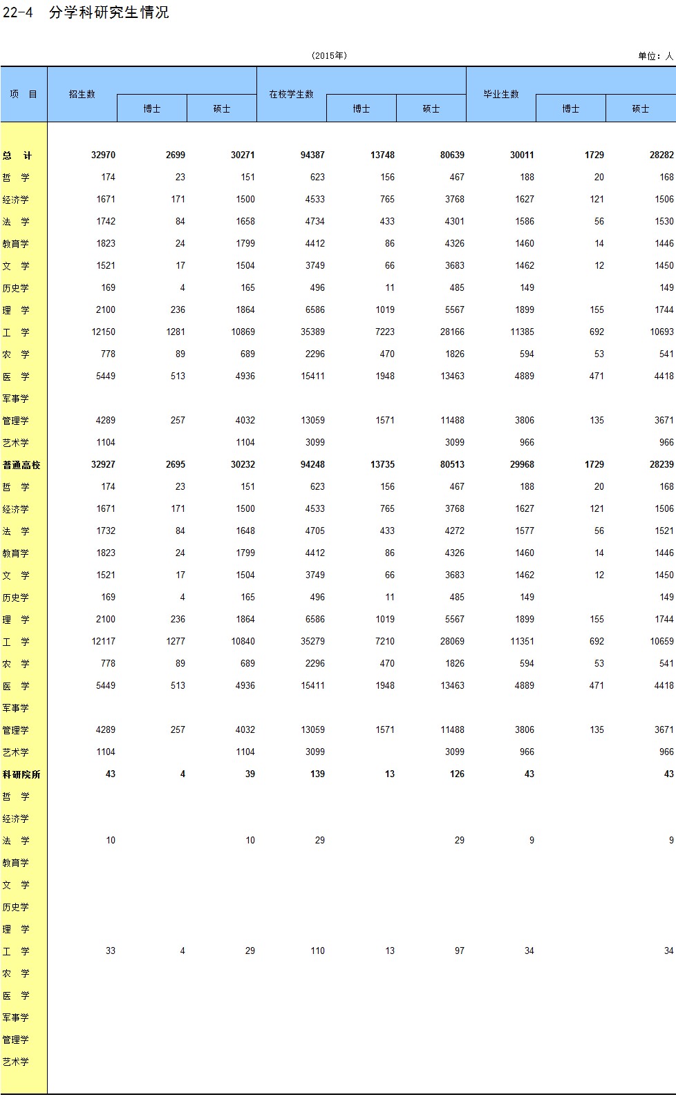 22-4 分学科研究生情况
