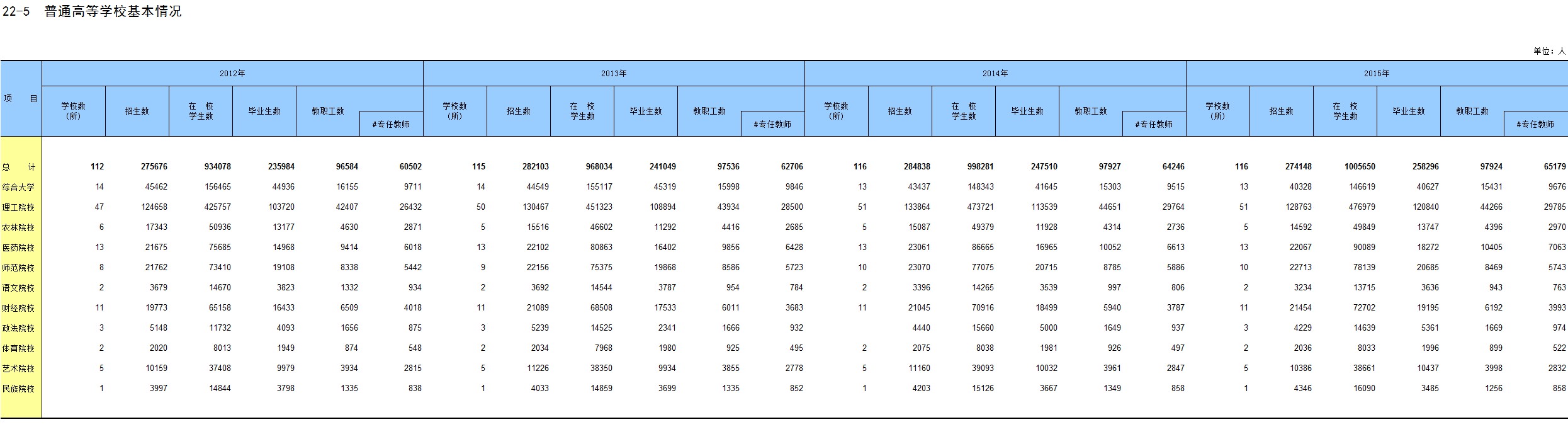 22-5 普通高等学校基本情况