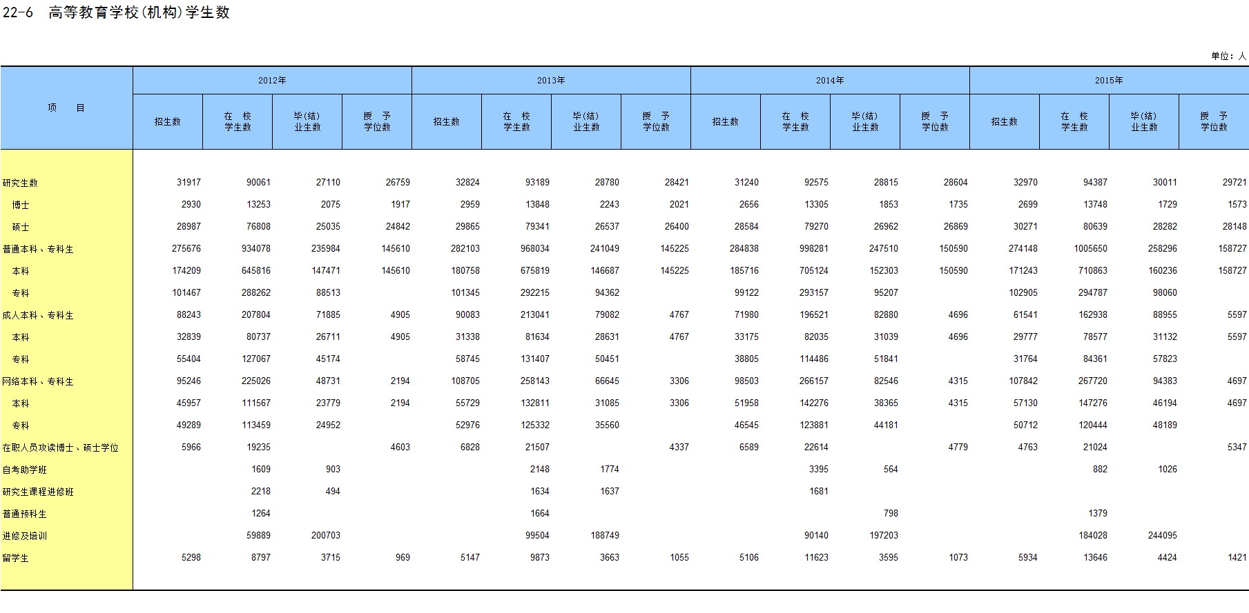22-6 高等教育学校(机构)学生数