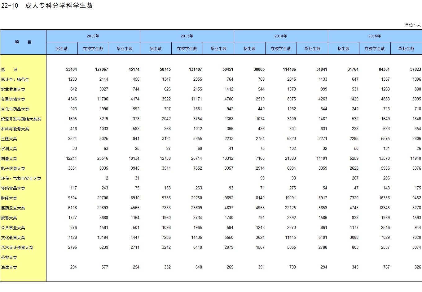 22-10 成人专科分学科学生数
