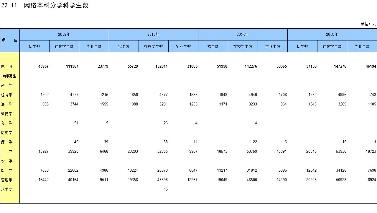 22-11 网络本科分学科学生数