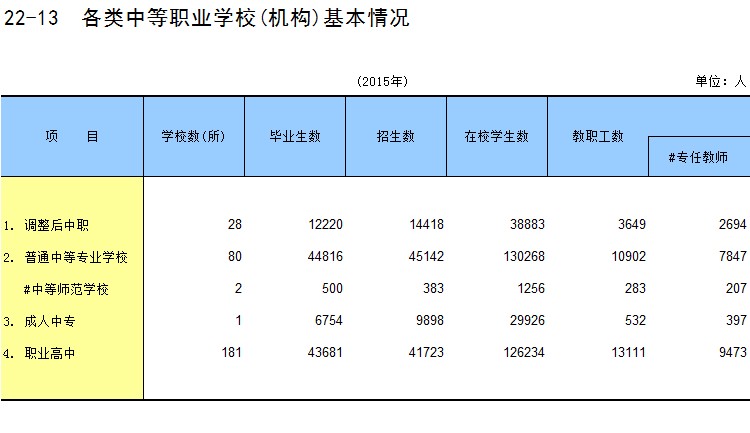 22-13 各类中等职业学校(机构)基本情况