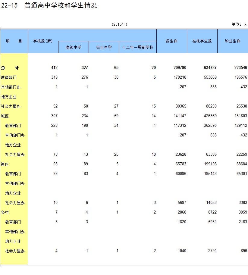22-15 普通高中学校和学生情况