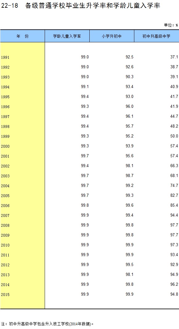 22-18 各级普通学校毕业生升学率和学龄儿童入学率