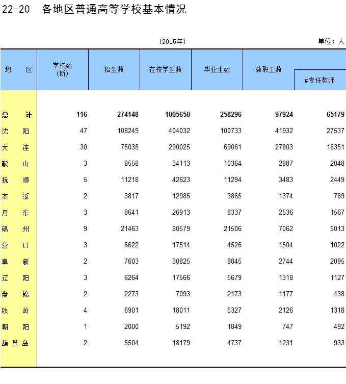 22-20 各地区普通高等学校基本情况