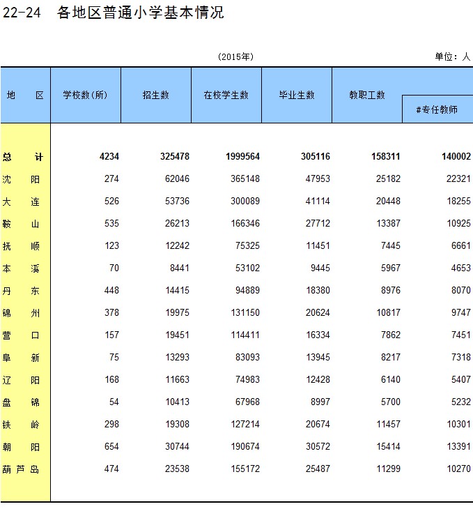 22-24 各地区普通小学基本情况