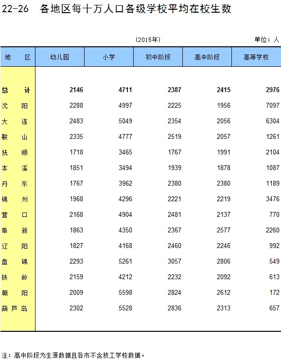 22-26 各地区每十万人口各级学校平均在校生数