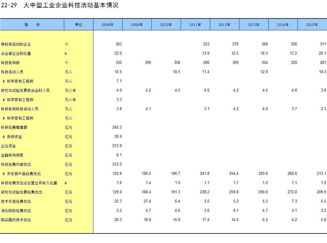 22-29 大中型工业企业科技活动基本情况
