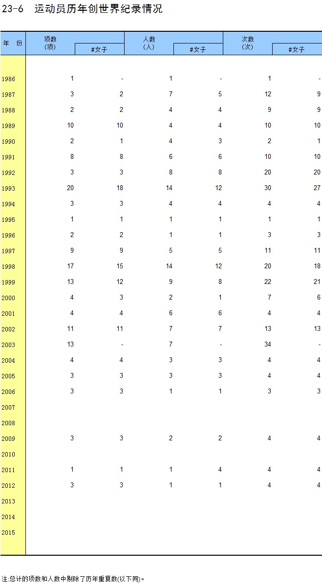 23-6 运动员历年创世界纪录情况