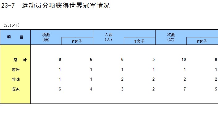 23-7 运动员分项获得世界冠军情况