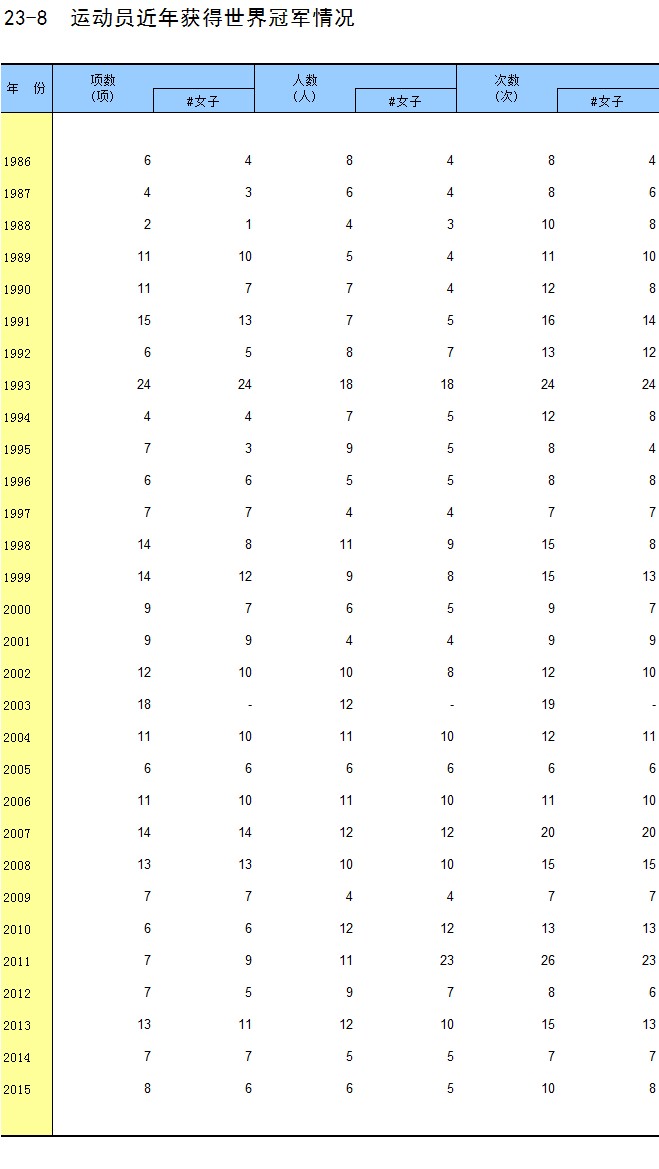 23-8 运动员近年获得世界冠军情况