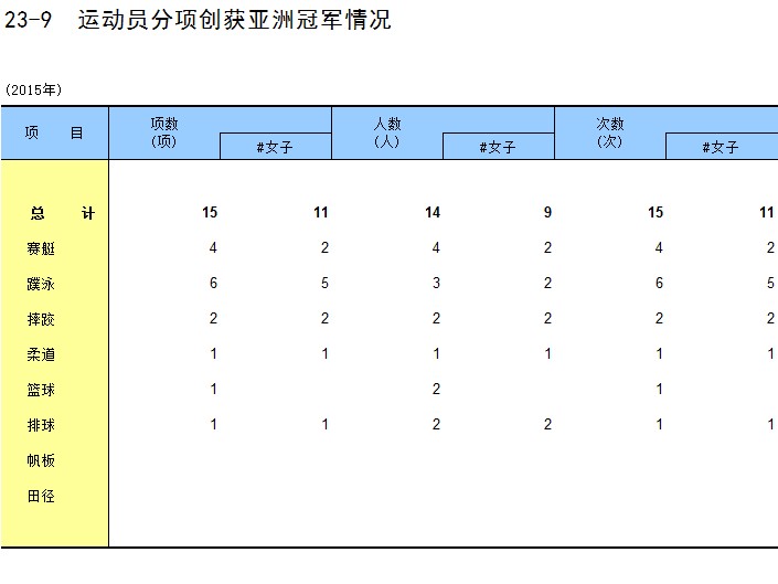 23-9 运动员分项创获亚洲冠军情况
