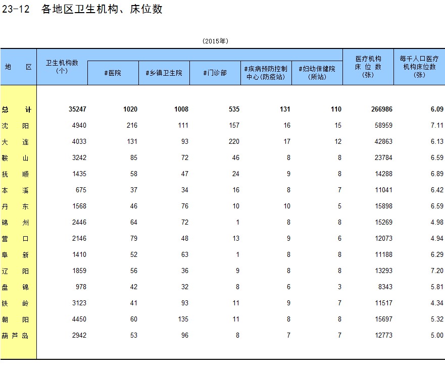 23-12 各地区卫生机构、床位数