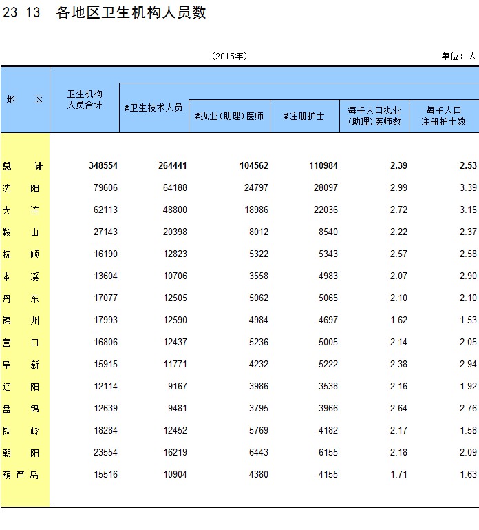 23-13 各地区卫生机构人员数
