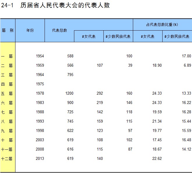 24-1 历届省人民代表大会的代表人数