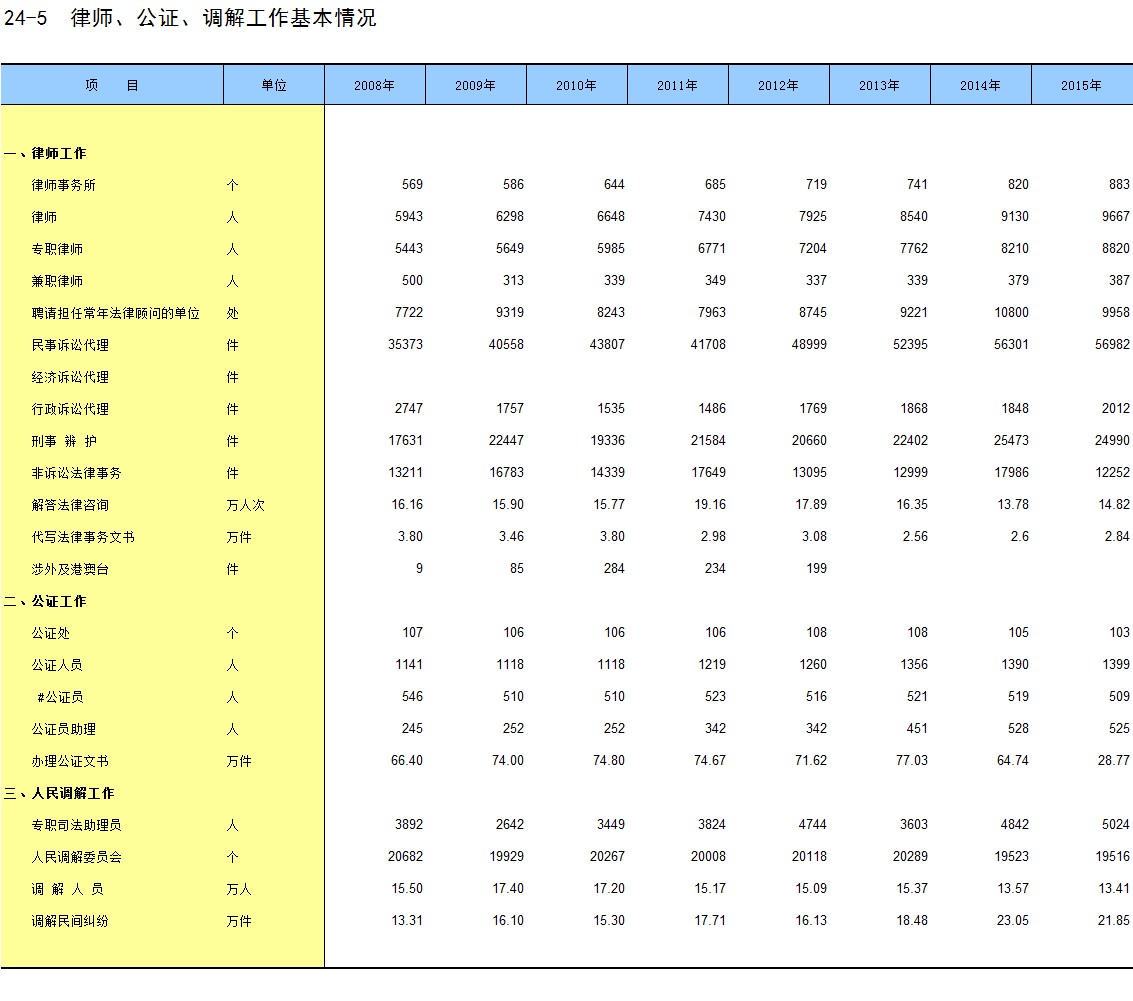 24-5 律师、公证、调解工作基本情况