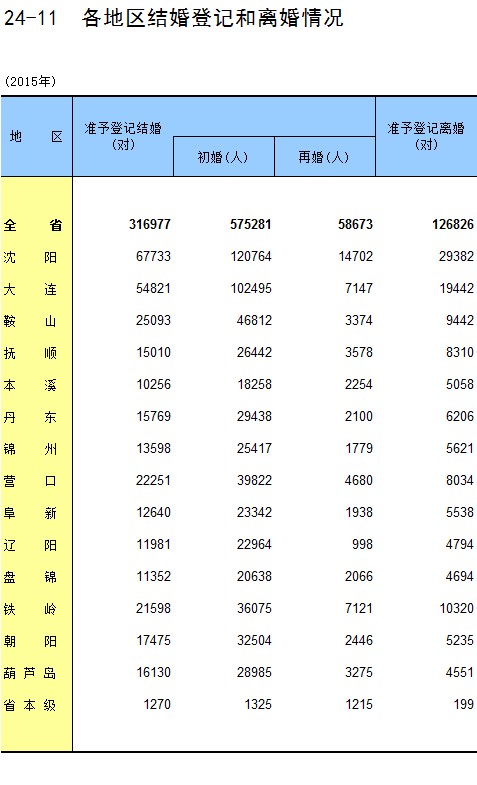 24-11 各地区结婚登记和离婚情况