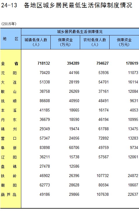 24-13 各地区城乡居民最低生活保障制度情况