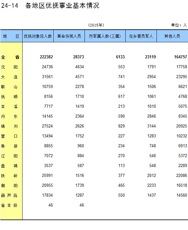 24-14 各地区优抚事业基本情况