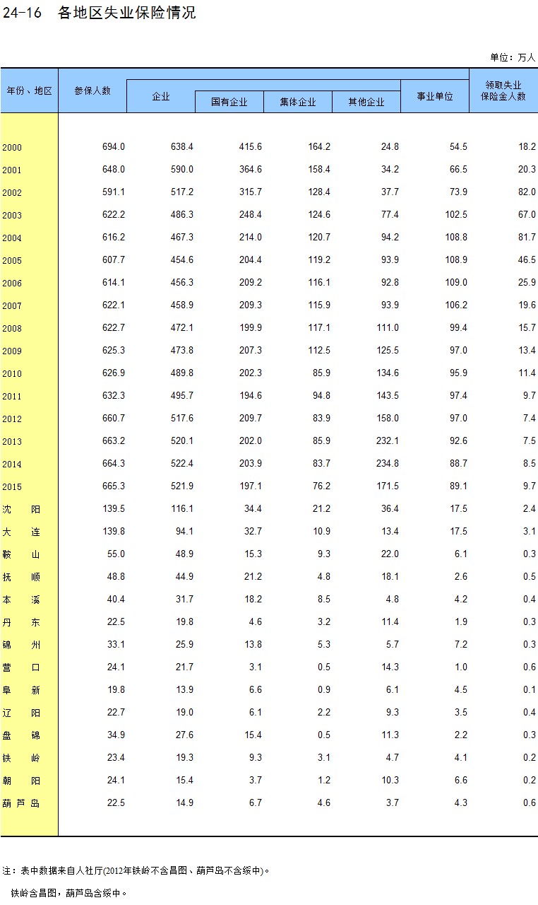 24-16 各地区失业保险情况