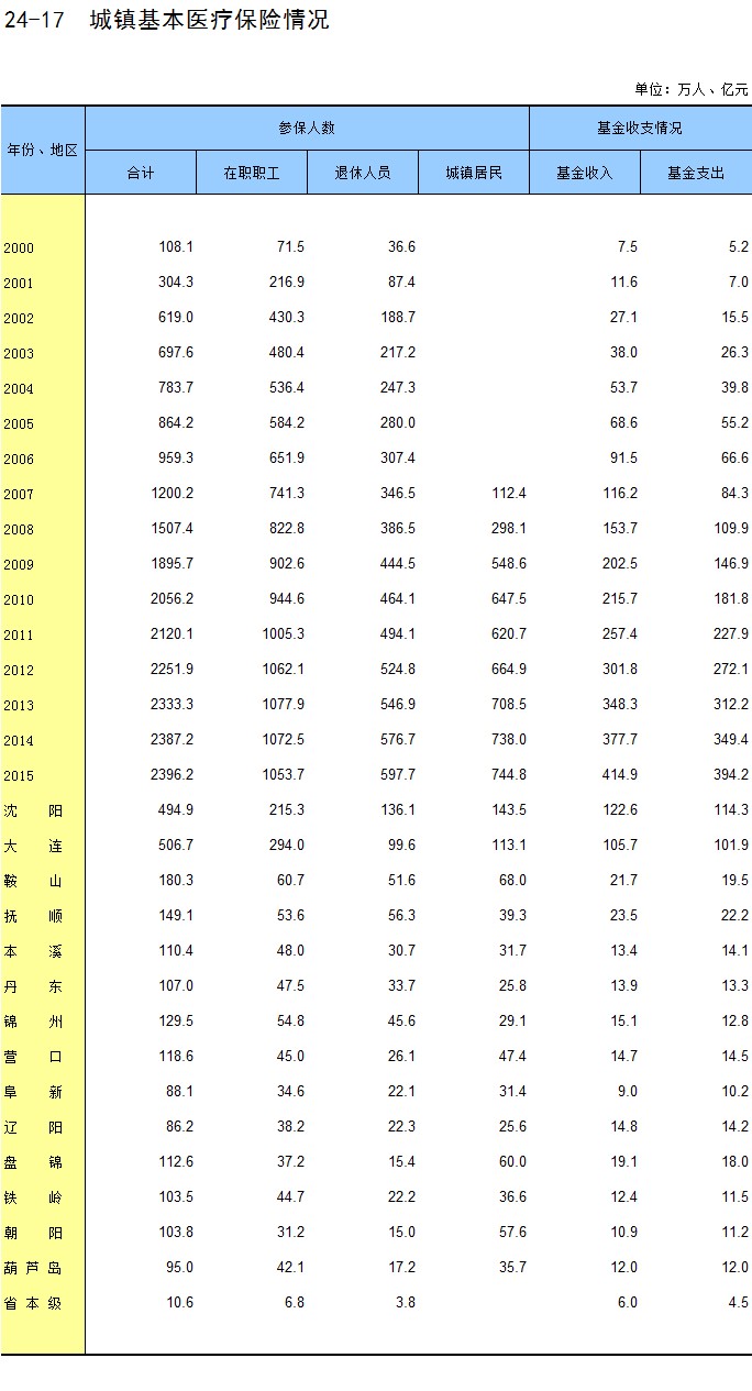 24-17 城镇基本医疗保险情况
