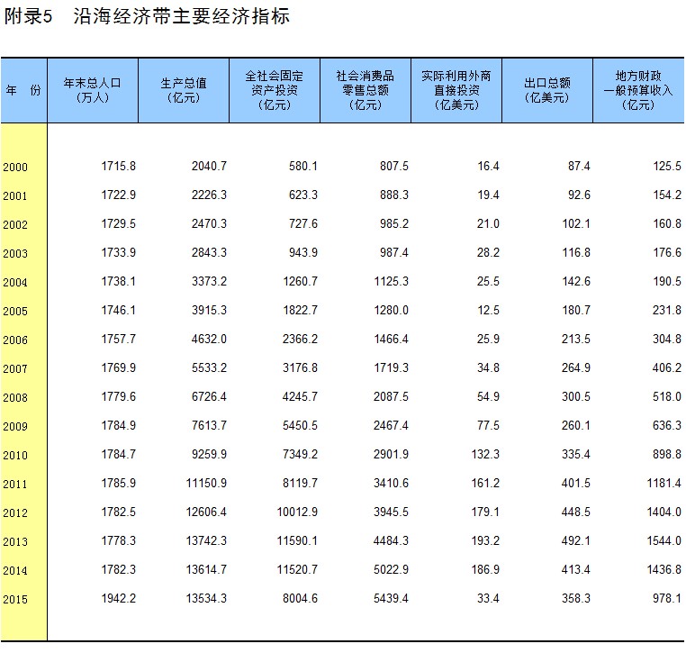 附录5 沿海经济带主要经济指标