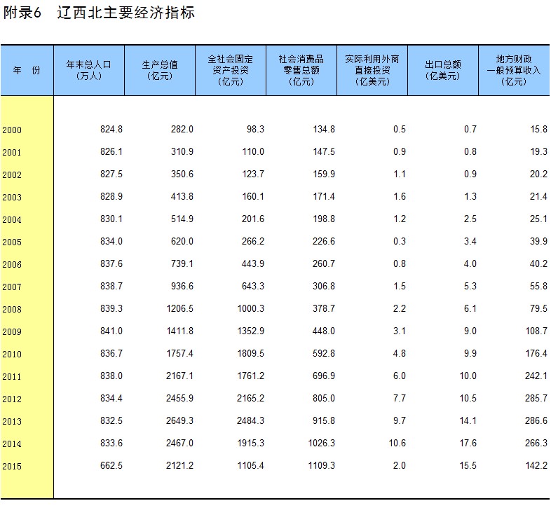 附录6 辽西北主要经济指标